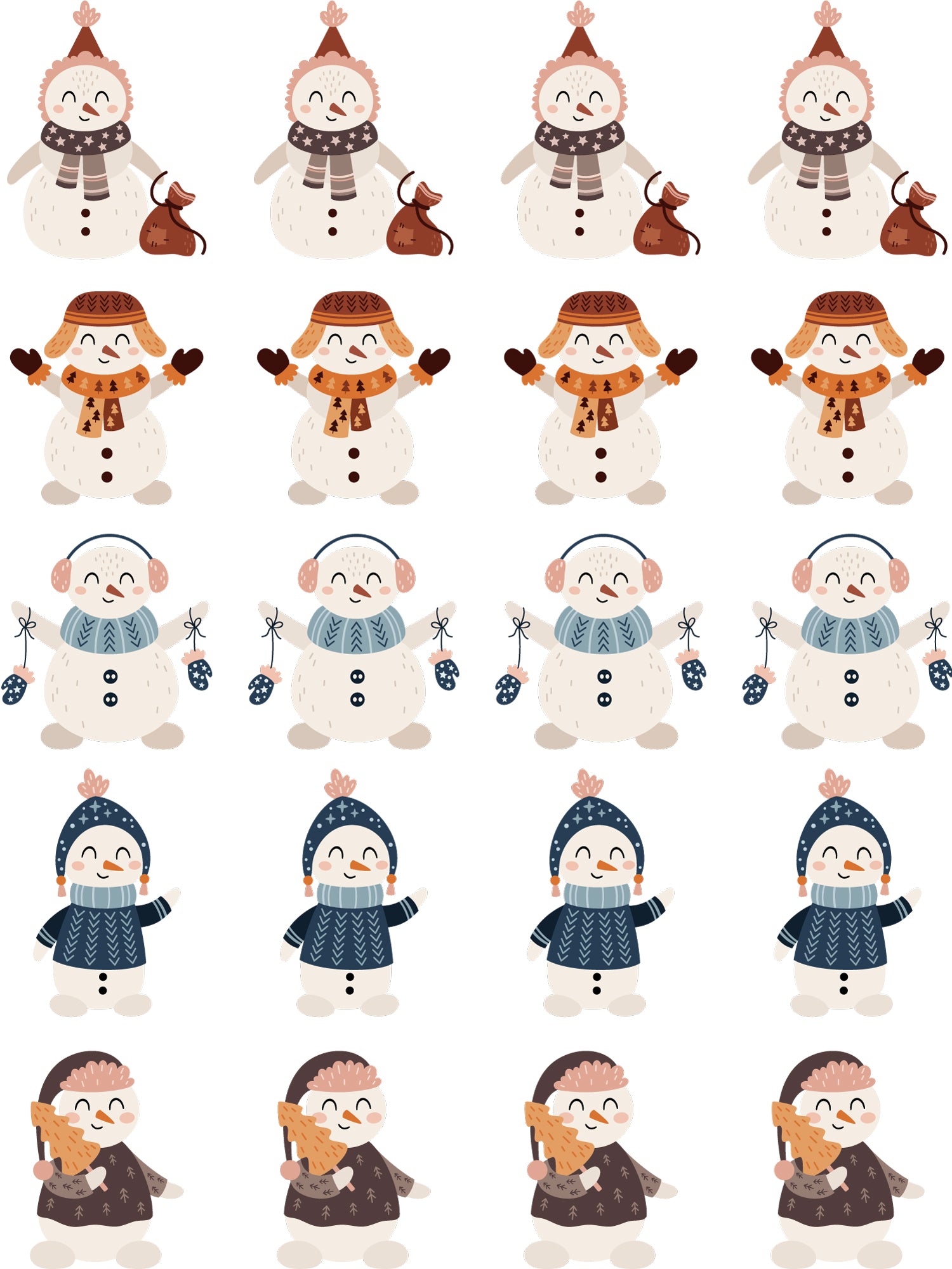 Het blad heeft een formaat van ongeveer 24 cm breed en 32 cm lang en bevat maar liefst 20 sneeuwmannen in gezellige winteroutfits. Elke sneeuwman is ongeveer 5,5 cm hoog en 5 cm breed. Gebruik een deel van het blad voor een speels colorblock-ontwerp, of laat je hele project stralen door het in één keer te bedrukken. De mogelijkheden zijn eindeloos!